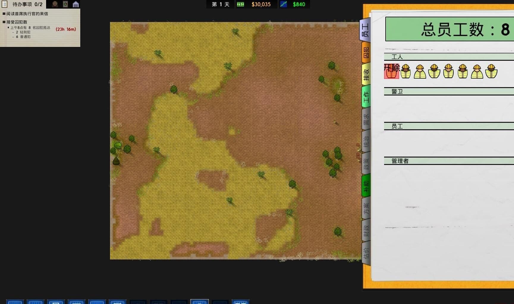 监狱工作人员是你的员工,狱警和工人等,需要他们才能使您的监狱完善地运行。一些员工在你通过“行政”菜单解锁它之后才能雇佣。 员工有三大类:正常工作人员、政府成员和外部人员。 正常工作人员在整个监狱中执行自动化任务,确保监狱继续运营。他们可能会自动工作或被控制,但通常会自己工作。 政府成员,无法直接控制整个监狱,他们也不执行任务。相反,政府成员执行机构研究任务以解锁额外的监狱功能。他们需要自己的办公室。除了心理医生可以雇佣多个以外,其他政府成员只能雇佣一个。 外部人员无法雇佣并得不到任何工资。相反,他们在需要的时候出现,如果离开监狱,他们的工作就完成了。 可用的员工可能会雇佣的人员在屏幕底部的菜单,并可能被解雇,可以在右下角“报告”中的“工作人员”菜单,点击员工删除它们。