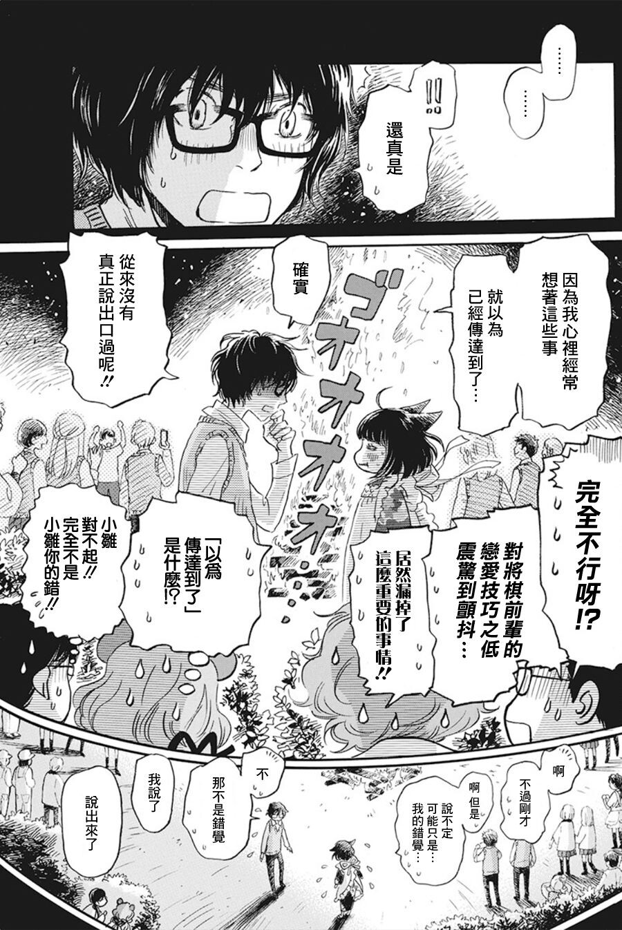 【漫画】【补】三月的狮子【度盘/482M】 漫画丨CG 5年前 仰望星空的爬虫 - 2 《三月的狮子》是一部由SHAFT制作,新房昭之执导,河西健吾、花泽香菜、茅野爱衣、久野美咲担任主要配音的电视动画,改编自羽海野千花执笔的漫画 最后审核由 龙姐 UID:1 单行本八卷,连载的167话,目前故事在明确地向女主表白了,然后是B2组的排名战第六局。动漫两季的进度大概是漫画的一半左右