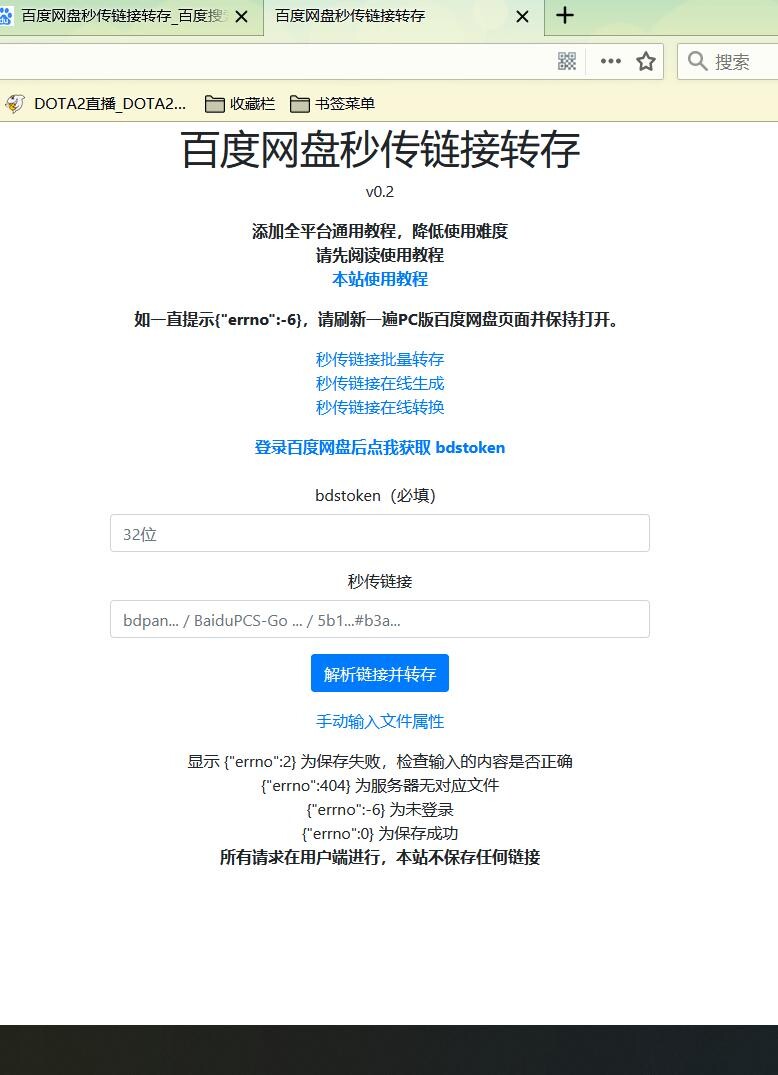 我自己的电脑安装不上插件,在找资源的时候意外发现了这个网站,它支持无插件转存度盘秒传链接,具体原理我也不是清除,但确实能够使用,有相关需求的可以收藏一下。