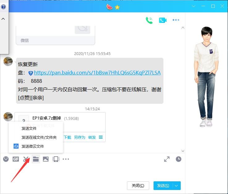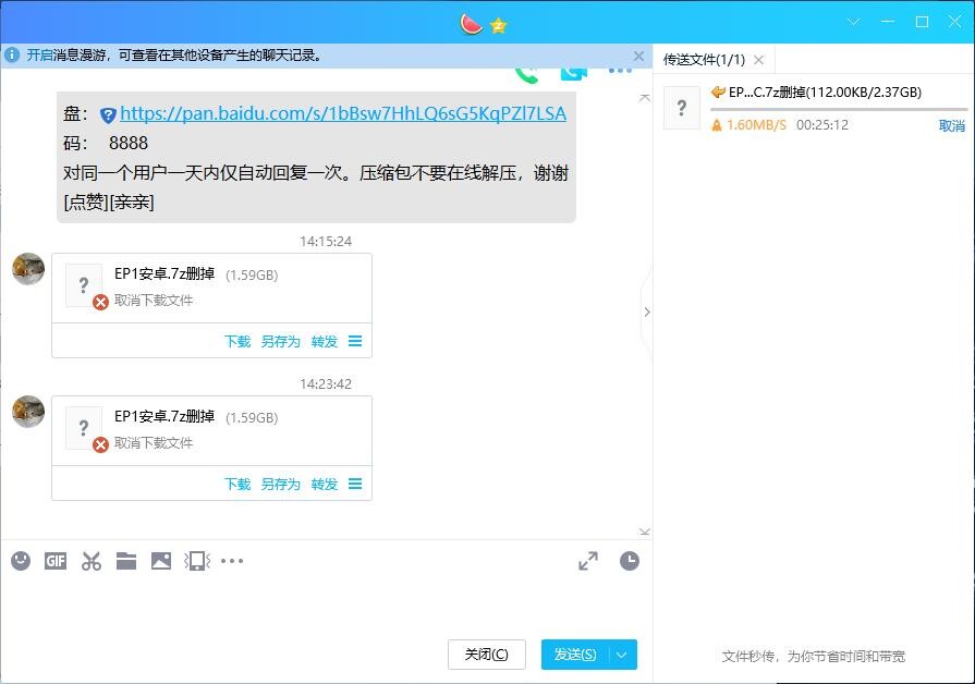 【技术教程】鉴于萌域最近很多腾讯微云的资源来开一篇技术贴 技术教程 4年前 ZIP52 - 4 鉴于萌域最近很多腾讯微云的资源来开一篇技术贴 最后审核由 龙姐 UID:1 ①第一步先登录微云保存文件到微云 ②准备两个QQ号,然后把你保存微云的账号发送给另外一个账号,选中发送微云文件。 ③选择文件 ④发送,可以看到下载速度能到2M)(如果微云不充VIP我家下载是500KB 如果用这方法峰值能到2M ) 以上