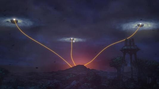 在漆黑世界中浮现的,是染上黄金色的三条发光体。