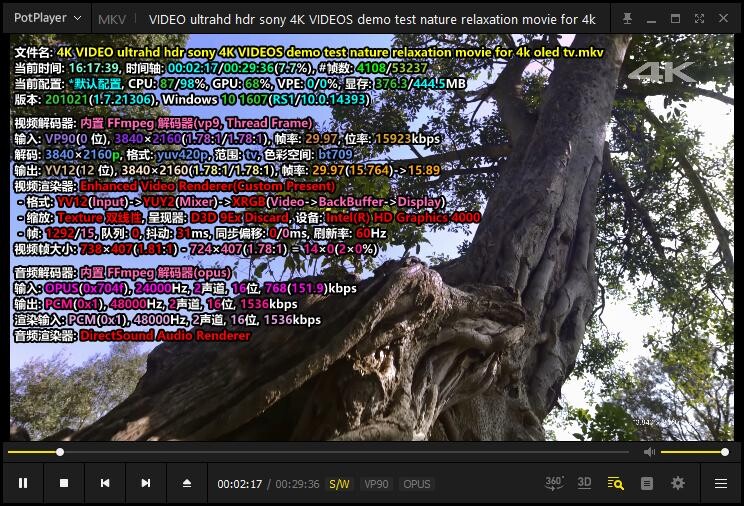 Daum PotPlayer,免费全能影音播放器,堪称Windows平台最强本地视频播放器。PotPlayer播放器,拥有强劲播放引擎加速,支持DXVA, CUDA, QuickSync,多媒体播放器支持蓝光3D,内置强大的解码器及滤镜/分离器,支持自定义添加解码器,对字幕的支持非常优秀,能够兼容特效字幕及在线搜索字幕实时翻译。