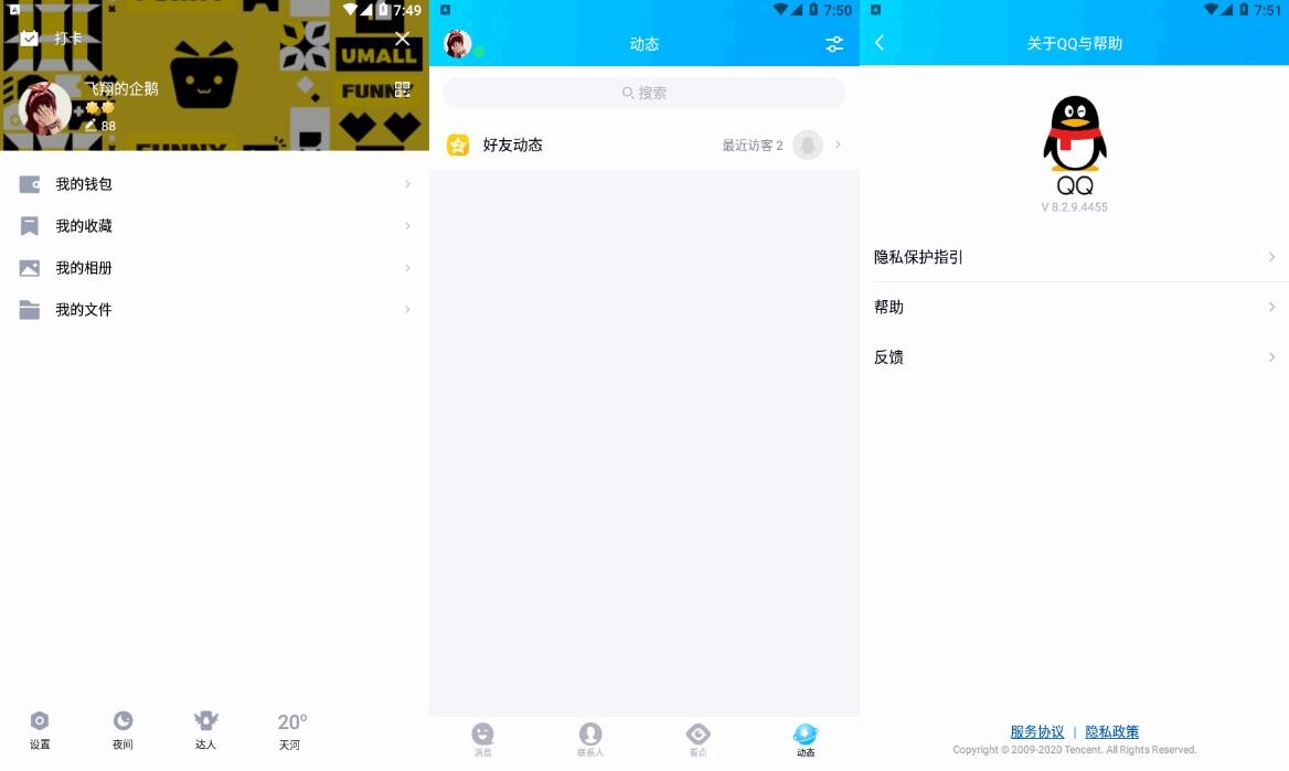 【软件推荐】Android QQ 8.2.11.4530 for Google Play 技术教程 4年前 ☆夕落づ - 1 Android QQ手机版谷歌版,相比官方国内版,没有广告和多余功能,内存占用低,应用权限较少,隐私较严格,无更新服务,无强制升级弹窗,不会像国内版那样频繁更新。不喜欢手机QQ国内版的机友推荐使用。 软件截图 新版特性 im.qq.com/mobileqq/featureplay.google.com/store/apps/details?id=com.tencent.mobileqq 版本特色 相比官方和国内渠道版,手机QQ谷歌版特点如下:* 个人隐私条款严,无资讯入口,无腾讯新闻推送* 权限少,内存低,无升级提示弹窗,版本免升级* 阉割了部分会员入口和VIP功能,如:主题、个性装扮等功能* 侧边栏:无会员入口、个性装扮、情侣空间、小游戏、短视频