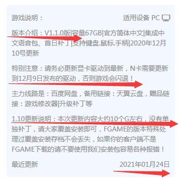 1.10更新说明:本次更新内容大约10个G左右,没有单独补丁,请大家覆盖安装即可,FGAME的版本特殊处理过覆盖安装存档不会丢失,如果你的客户端不是FGAME下载的请不要使用我们安装包容易各种报错! 最后审核由 龙姐 UID:1