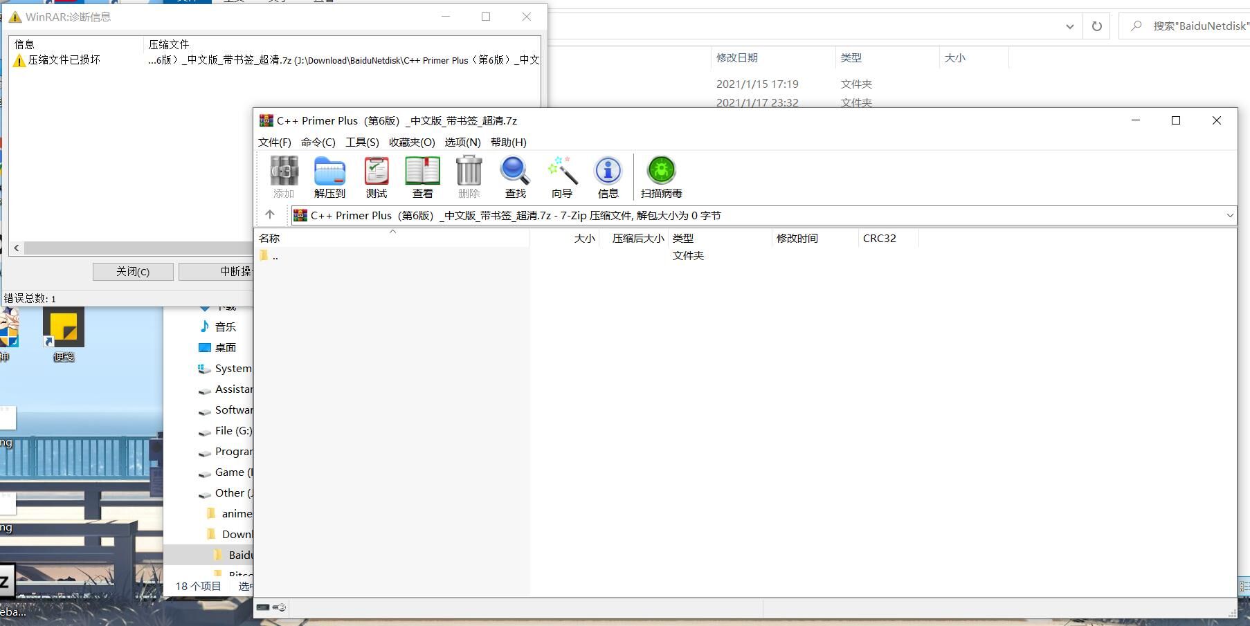 由于百度网盘在线解压的缘故,资源往往需要压缩并改扩展名才能上传。可是,我遇到一个奇怪的现象,每当我要解压某些分卷压缩时,总会报错(如下),这样3 4次,我感觉哪里有问题,鼓捣了半天,才明白哪儿错了。