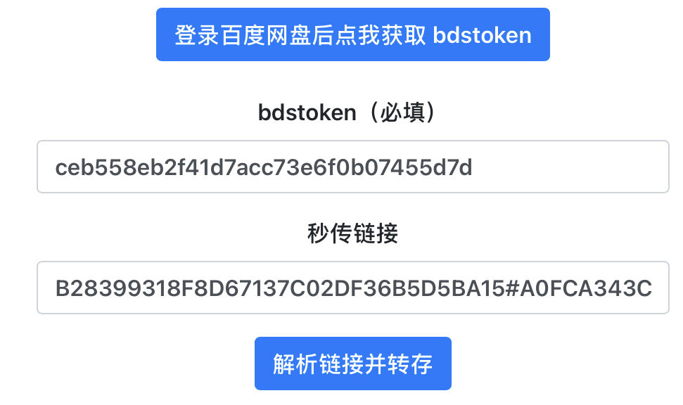 粘贴好bdstoken和秒传链接,点击转存按钮即可