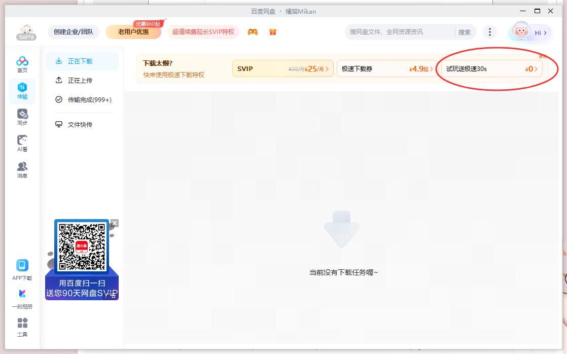 以下是怎么在不开年度或月度会员情况下,使用百度网盘会员速度的几种方式(包含一种非白嫖,低成本方式):
