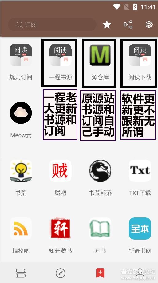 - 有无APP更新或书源或订阅更新 多可以在订阅里面看见 订阅源一定要导入里面有一程大佬时常更新的书源和订阅