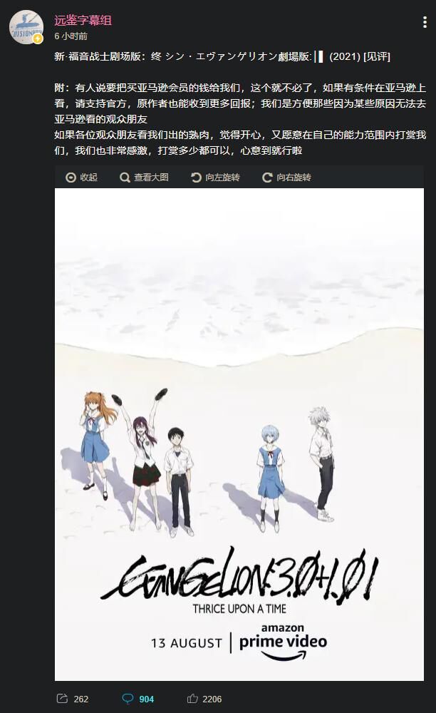 【番剧】【免币】新·福音战士剧场版:终 シン・エヴァンゲリオン劇場版:│▌ (2021) [3.47G] 剧场版丨OVA, 动画 4年前 staylobb - 6 远鉴字幕组 亚马逊资源 熟肉 最后审核由 望月 澪 UID:59441 免币资源 希望大家可以去b站关注一下字幕组的账号 刚刚看完 说一点自己的废话吧 谢谢你 庵野秀明 真的结束了 玛丽解开真嗣脖子上最后的DSS 那一刻起 One Last Kiss响起 那一刻起 真嗣、香香、丽、好女人玛丽、熏、美里、加持、东月…他们的EVA. 我们的的EVA. 痞子的EVA . 谢谢你 庵野秀明 恭喜你 庵野秀明。 没有Eva的世界 等BD 新·福音战士剧场版:终 シン・エヴァンゲリオン劇場版:│▌ (2021) https://pan.baidu.com/s/1BY-TFdDOsBior6fHlcFFxg 提取码: yjnb