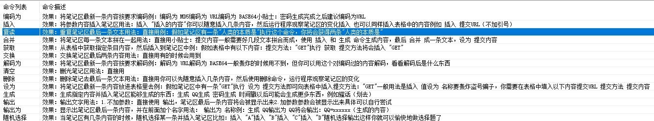 1.“插入”可以将文本插入笔记区,文本要打英文引号,引用参数时不需要。每次插入会生成一条笔记,多个插入不会在同一笔记中 etc:插入 “qq=” 插入 提交URL