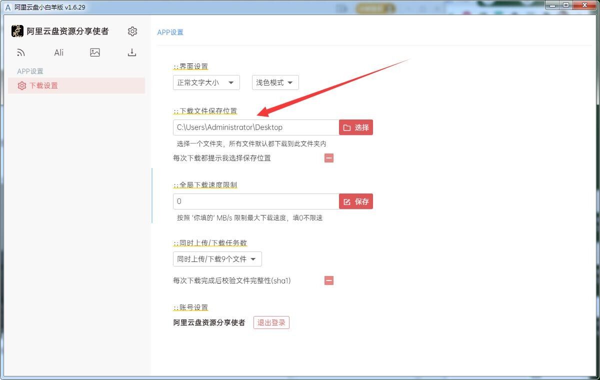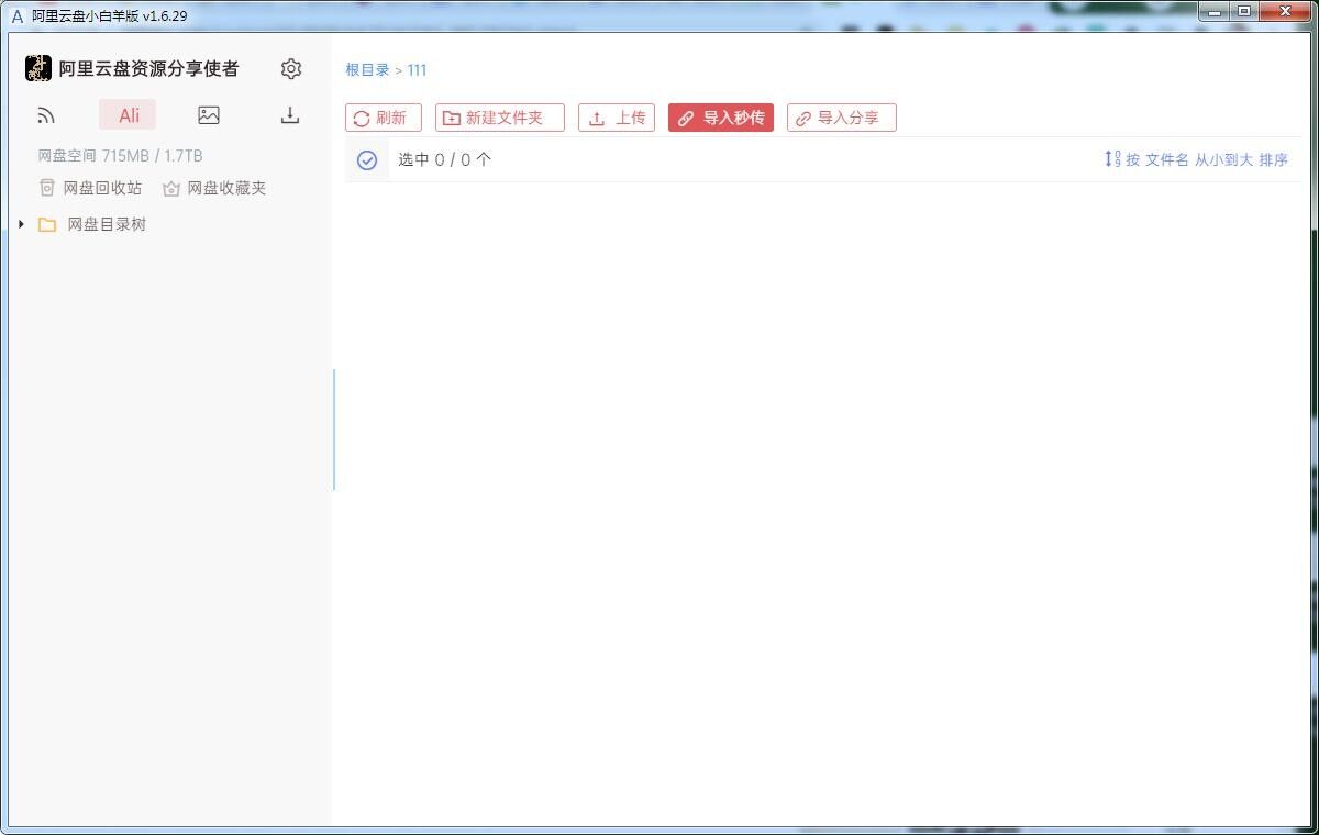 双击运行”阿里云盘小白羊版v1.6.29.exe”程序即可打开软件,初次启动服务器要等待40秒 (未必需要40秒)