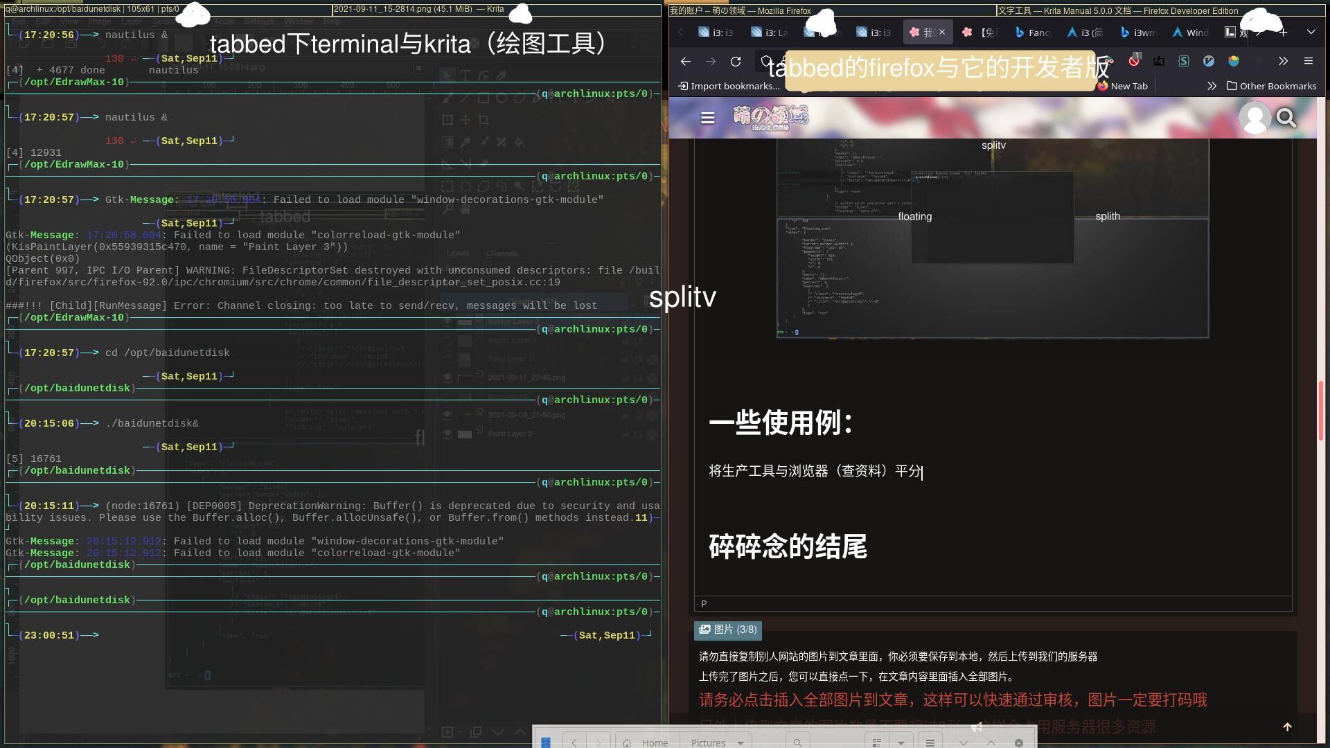 - 这样只能出现一个tabbed与一个splitv,如何是两个tabbed就要自己想了(再写就会把人绕晕了(也可以私下问我))