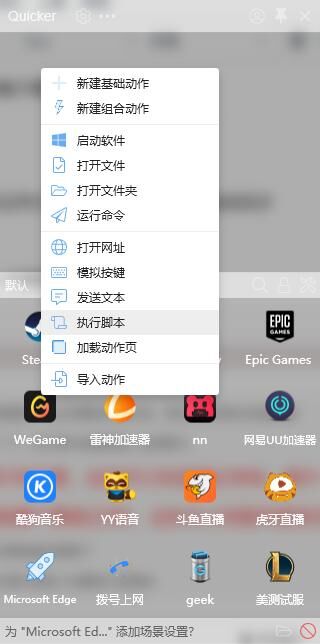 本篇需要搭配前面发的两篇文章食用 win10免密码登录 Quicker指尖助手 PS:如果你的电脑不支持这两步也是可以的,不过效果缩减很多 第一步 打开quicker面板,选择一个空白的格子,鼠标右键,选择:执行脚本