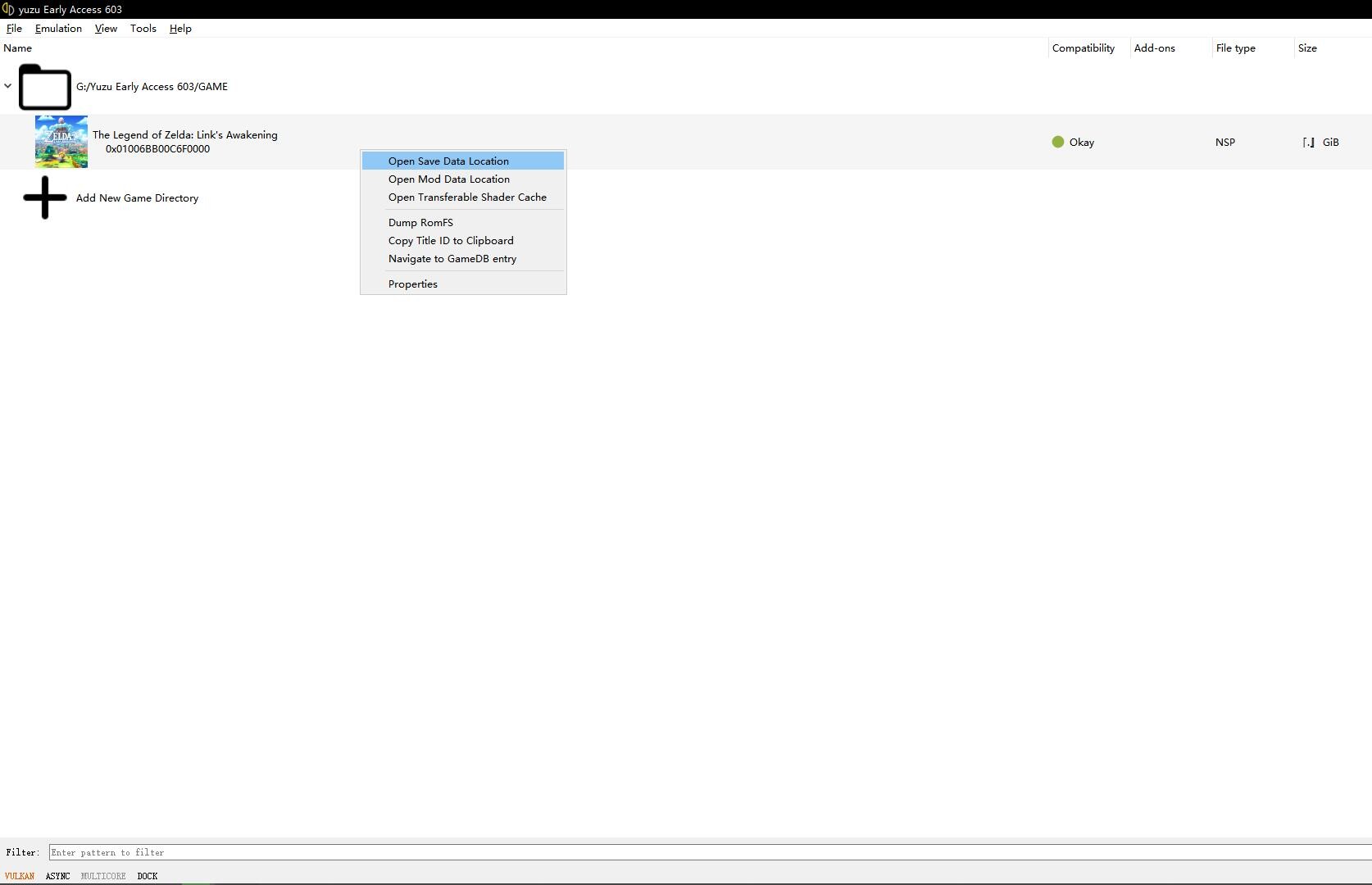 【游戏】塞尔达传说织梦岛模拟整合版 单机游戏 5年前 阿空&艾璐 - 3 SWITCH模拟器YUZU已经优化得不错了,今天自己整合了一个游戏文件分享给大家。 最后审核由 夜尽天明 UID:632 模拟器还是挺吃显卡和内存的,本人游戏本显卡1050ti4G,8G内存,处理器 i5-8300H. 玩下来感觉平均帧数能有30+,切换地图会有掉帧,配置在我之上的应该没有问题 本人用的手柄玩的,所以按键设置里面是用的手柄配置,各位可以自己在设置里面调控制。 configure就是调按键映射的选项。 要开新档的话可以打开游戏存档位置删除之前的存档,注意:要留下存档0,就是图中第一个存档。