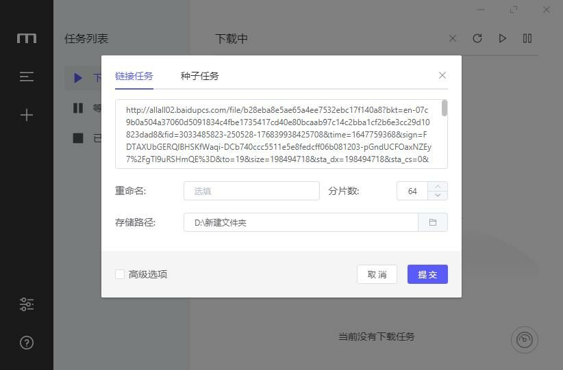 3、把通过脚本获取到的直链复制到下载器内(下载器会自动导入,有时可能下载时文件名会乱码且无后缀名,就像下面这种,可以自行更改,idm似乎没有这种问题)