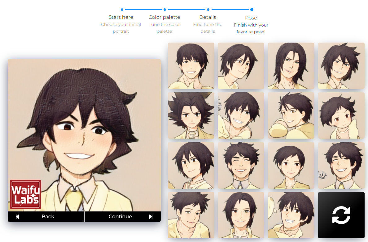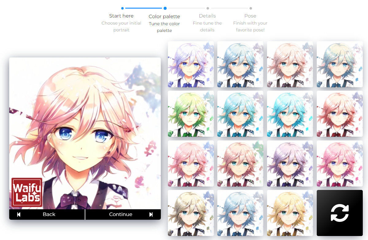 发现了一个可以生成动漫风头像的网站「waifulabs」,选择初始模板后,跟随系统提示逐步调整色调、风格和姿势,即可获得与众不同的动漫风头像。