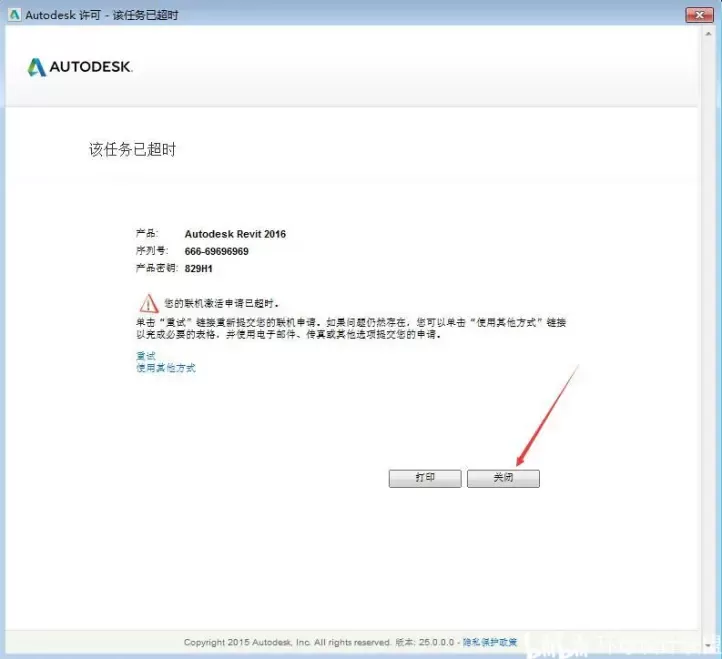 11. 如出现此提示框,点击关闭,重新打开软件进行激活。