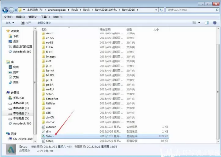 2. 打开Revit2016文件夹,右击Setup.exe,以管理员身份运行。