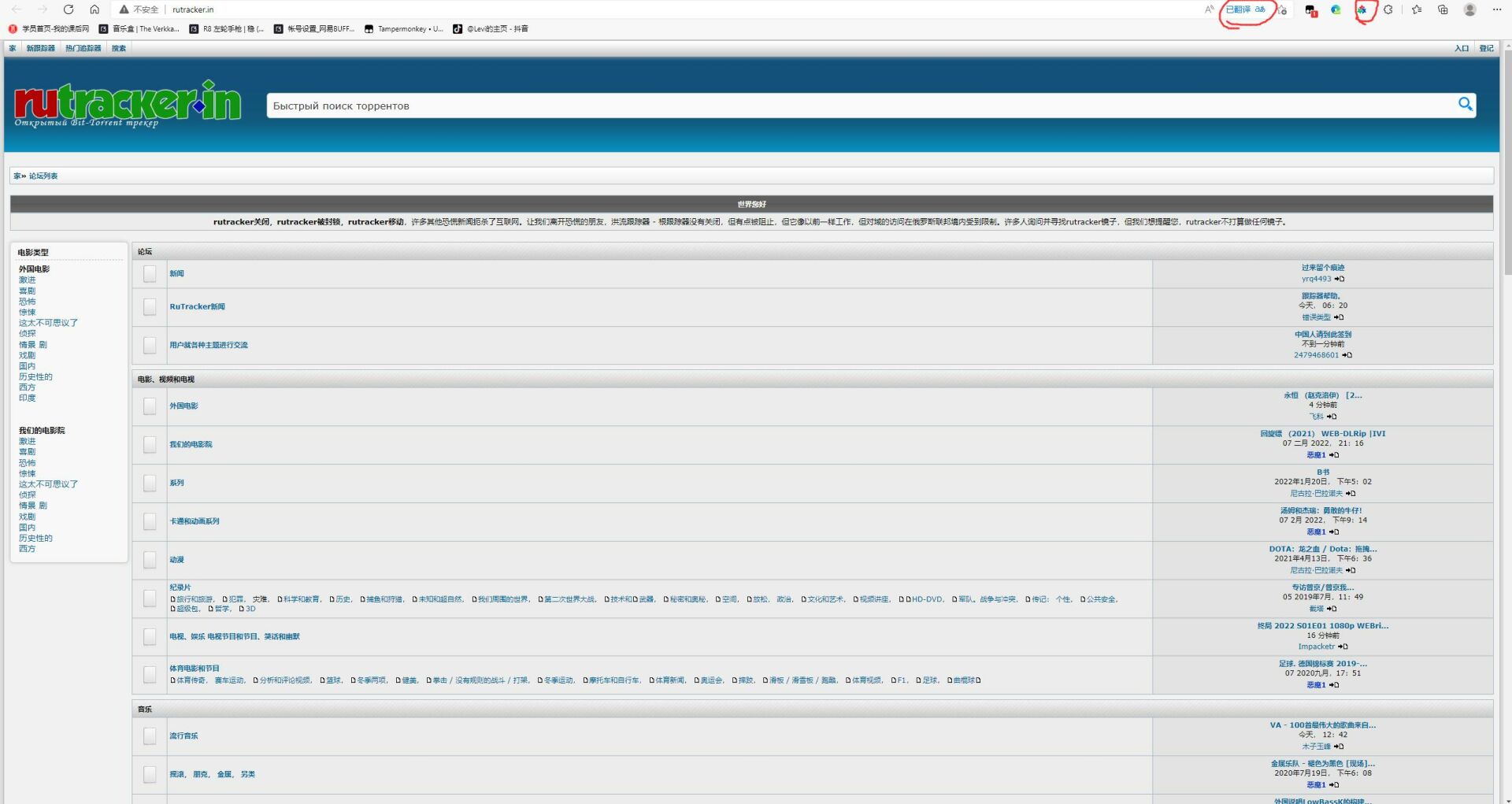 首先rutracker.in这是其网址,当然 硬进你是进不去的(),这时候就要用到我们的edge浏览器了