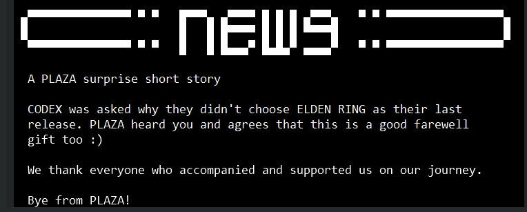 著名PC游戏破解团队CODEX昨天已经与玩家道别、宣布解散,而今天,Codex旗下子团队“PLAZA”也宣布了解散,并且他们在解散前还留给玩家一份“大礼”。