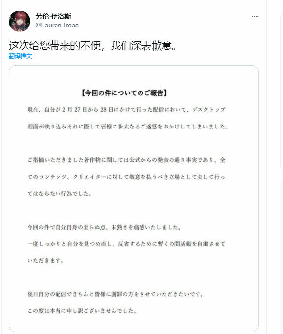 【乐子】日本Vtuberローレンさん直播时被网友发现有盗版文件夹,女演员在他推特留言记得要看正版啊! 八卦资讯 3年前 无情的审核水文bot - 这算是ntr吗 最后审核由 龙姐 UID:1 近日一位油管主播「Lauren_iroas」在直播中被发现有盗版AV的文件夹,事后在推上引发日本网友热议,甚至引来“艾微”里的女主角「松本いちか」的问候“下次请去正规渠道购买观看”目前该主播已发文道歉。