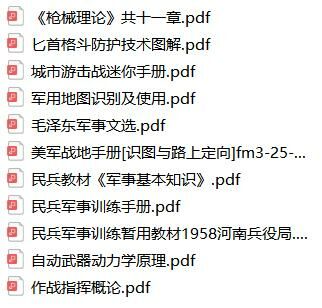 一些军事相关的书和文章,包括民兵训练、轻武器使用、军事指挥、地图识图,等等。 最后审核由 望月 澪 UID:59441