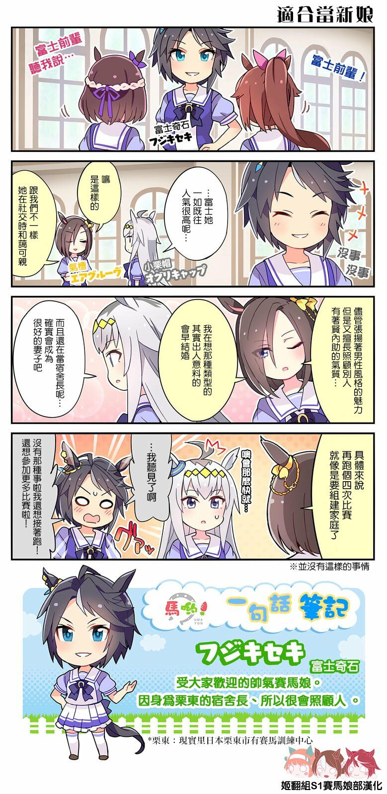 【漫画】赛马娘四格(已完结)【度盘】 漫画丨CG 3年前 长萌大门神 - 賽馬赛马娘四格》是Cygames原作,伊藤仁作画的日常漫画作品 最后审核由 龙姐 UID:1 赛马娘PrettyDerby的日常四格漫画。 记录马娘之间的搞笑与温馨日常。