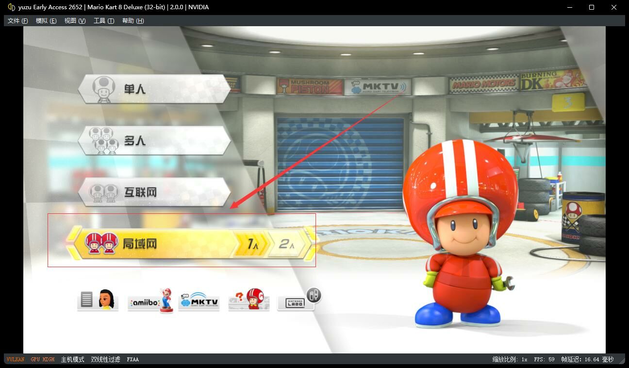 确认你已经按照联机服务器教程,配置好了服务器与模拟器。 服务器名称是“马里奥赛车8联机”,密码是“yuukii”