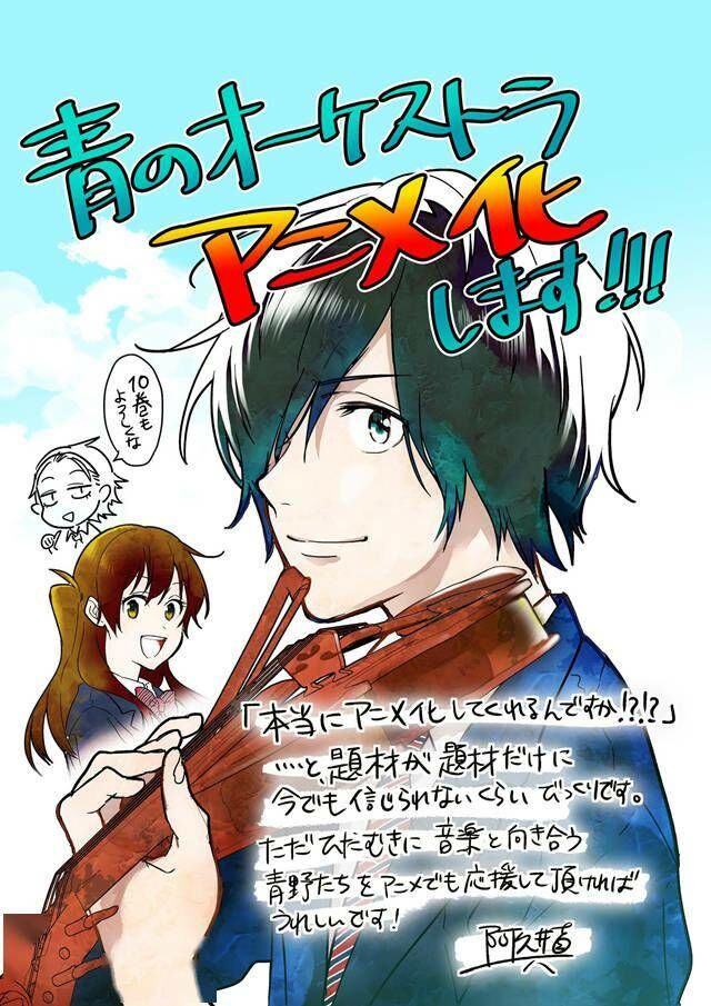 【资讯】阿久井真 的管弦乐社团题材漫画《蓝色管弦乐》宣布TV动画化 动漫资讯, 资讯 3年前 无情的审核水文bot - 也没看过 阿久井真 的管弦乐社团题材漫画《蓝色管弦乐》宣布TV动画化,漫画最新卷将于4月19日发售。本作讲述了前天才少年 青野一 因某些原因放弃了小提琴演奏。但初中三年级时,他邂逅了 明园律子 及高中的管弦乐部,曾经静止的时间也在合奏中再一次开始流动。