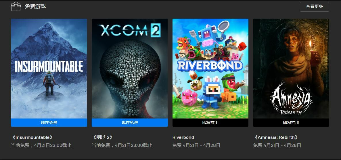 下周Epic同样将送出两款游戏,分别为动作冒险类游戏《像素立方世界(Riverbond)》和冒险解谜游戏《失忆症:重生(Amnesia: Rebirth)》。