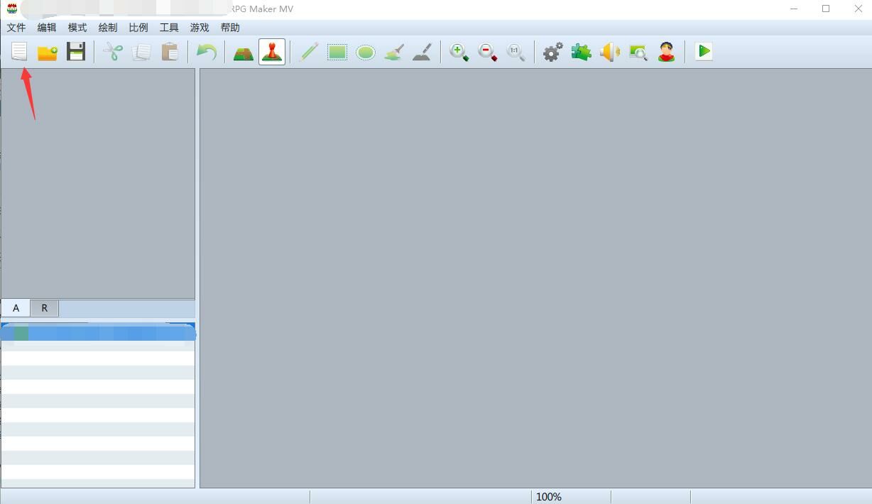 - 打开软件RPG Maker MV点击右上角的图片(如图箭头所示)新建一个项目,记住项目的位置,等待建立完毕。