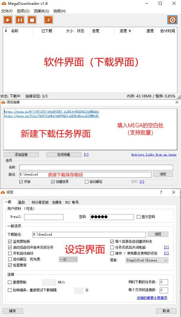 4.这样软件即安装完毕,那么如何使用呢?详见下方“Megadownloader使用介绍” |