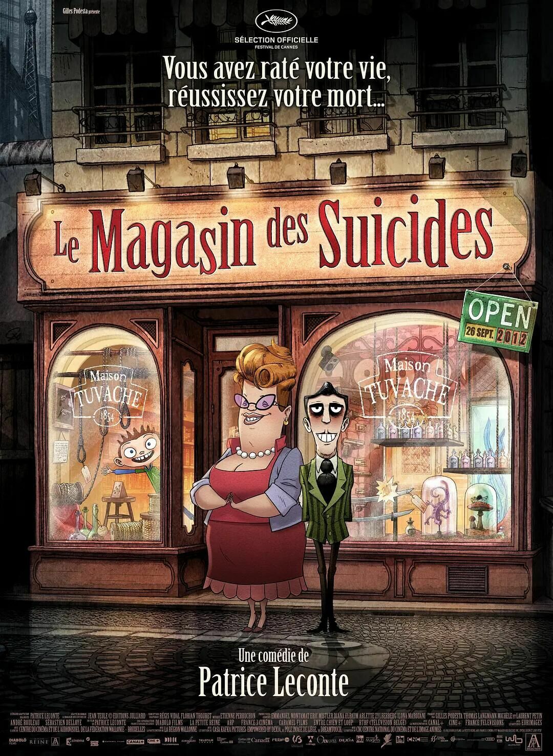 死气沉沉的法国小城,一家有口皆碑的老店却格外生意兴隆。原来这家祖传老店代代皆以贩卖自杀产品著称。在如此灰暗恐怖的小镇上,自杀成了当地居民稀松平常之事,这也是小店异常火爆的原因。经营此店的老板三岛了无生气,老板娘更是日日愁眉苦脸。他们早就丧失了对生活的热情,终日郁郁不安。长期贩卖自杀用品,让他们濒临崩溃的边缘。幸好他们的一双儿女还热爱着生活,尤其是他们的小儿子阿伦,笑容总是挂在他的脸上。然而,阿伦热爱生活的态度却威胁着老店的经营,父亲想尽办法让阿伦变得消沉,甚至把阿伦逼上了绝路……
