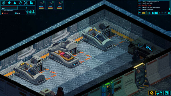 以等距方块拼贴而成的气体系统可以模拟飞船上的各种气体、温度和船员舒适度。人类、植物和设施会对其周围环境做出反应,从而为你设计的飞船和你创造的生活条件赋予意义。请确保设施安全,优化船员的生存水平和福祉,但同时也要考虑到未来可能发生的事故,以及船员战斗或环境危害造成的混乱。