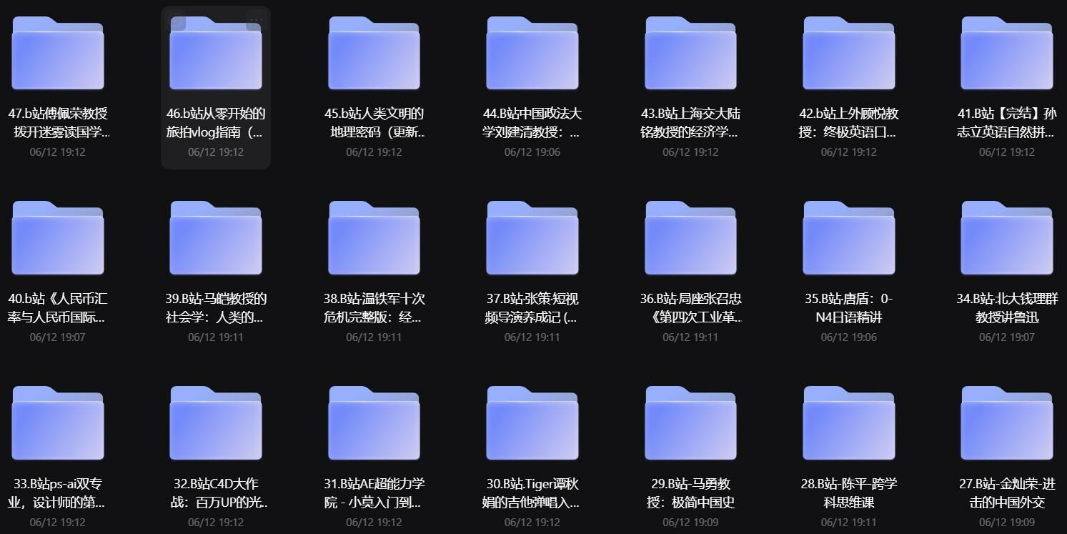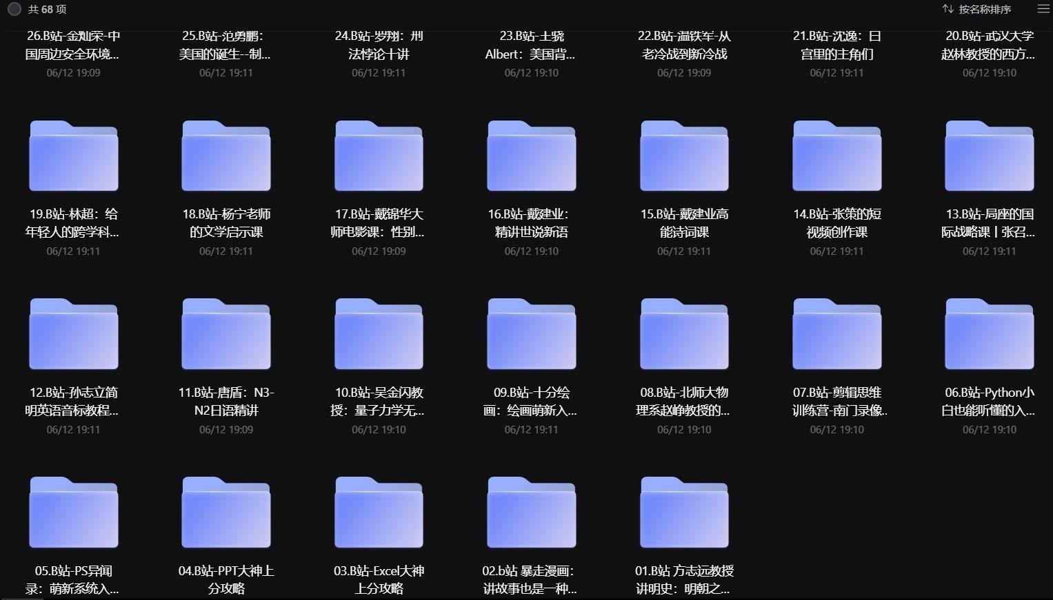 【学习资料】【付费课程】B站精选68套付费课程 学习资料 3年前 冬日可爱~ - 18 【付费课程】B站精选68套付费课程 最后审核由 龙姐 UID:1 B站精选68套付费课程 PS:阿里云盘分享,没意外应该不会失效。