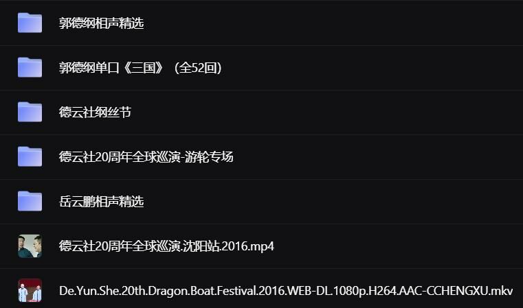 【相声】德云社相声收录大合集 电影丨电视剧丨特摄 3年前 冬日可爱~ - 8 德云社相声收录大合集,包含郭德纲相声精选、郭德纲单口《三国》(全52回)、德云社纲丝节、德云社20周年全球巡演-游轮专场、岳云鹏相声精选、德云社20周年全球巡演.沈阳站.2016、德云社端午节专场 最后审核由 龙姐 UID:1 德云社相声,包括郭德纲相声精选、郭德纲单口《三国》(全52回)、德云社纲丝节、德云社20周年全球巡演-游轮专场、岳云鹏相声精选、德云社20周年全球巡演.沈阳站.2016、德云社端午节专场。 PS:阿里云盘分享,如无意外不会失效。