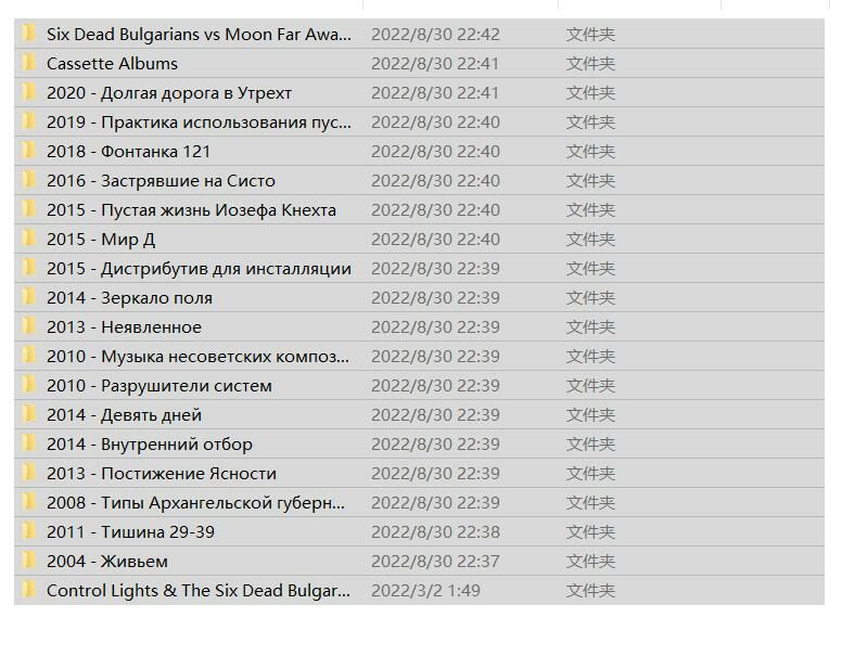 【音乐】six dead bulgarians 27张专辑 动画, 原声音乐集 3年前 werq98 - 俄罗斯电子氛围乐队,个人觉得值得一听。 最后审核由 龙姐 UID:1 比较完整的收集了这支乐队的作品,包括盒式磁带装的早期作品及合作发行的专辑. 可惜没有歌词。
