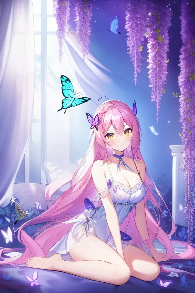 masterpiece,best qualtry,illustration, cinematic lighting, 1girl, animal, ass, bare_shoulders, barefoot, blue_butterfly, braid, breasts, bug, butterfly, butterfly_hair_ornament, butterfly_on_hand, choker, curtains, dress, eyebrows_visible_through_hair, flower, glowing_butterfly, hair_between_eyes, holding, long_hair, looking_at_viewer, pink_flower, purple_flower, sitting, solo, tail, wariza, white_butterfly, white_dress, wisteria, yellow_butterfly, yellow_eyes Negative prompt: ((((ugly)))),(((duplicate))), ((morbid)), ((mutilated)), (((tranny))), (((trans))), (((trannsexual))), (hermaphrodite), (out of frame), extra fingers, mutated hands, ((poorly drawn hands)), ((poorly drawn face)), (((mutation))), (((deformed))), ((ugly)), blurry, ((bad anatomy)), (((bad proportions))), ((extra limbs)), cloned face, (((disfigured))).(((more than 2 nipples))), out of frame, ugly, extra limbs, (bad anatomy), gross proportions, (malformed limbs), ((missing arms)),((missing legs)), (((extra arms))), (((extra legs))), mutated hands,(fused fingers), (too many fingers),(((long neck))) lowres, bad anatomy, bad hands, text, error, missing fingers, extra digit, fewer digits, cropped, worst quality,low quality, normal quality, jpeg artifacts, signature, watermark,username, blurry,text font ui,malformed hands,long neck,missing limb,Sleeveles,bad anatomy disfigured malformed mutated, (mutated hands and fingers :1.5),(long body :1.3), (mutation ,poorly drawn :1.2),bad anatomy disfigured malformed mutated,multiple breasts,bad feet,futa,yaoi Steps: 35, Sampler: Euler a, CFG scale: 7, Seed: 3968557696, Size: 640×960, Model hash: 925997e9