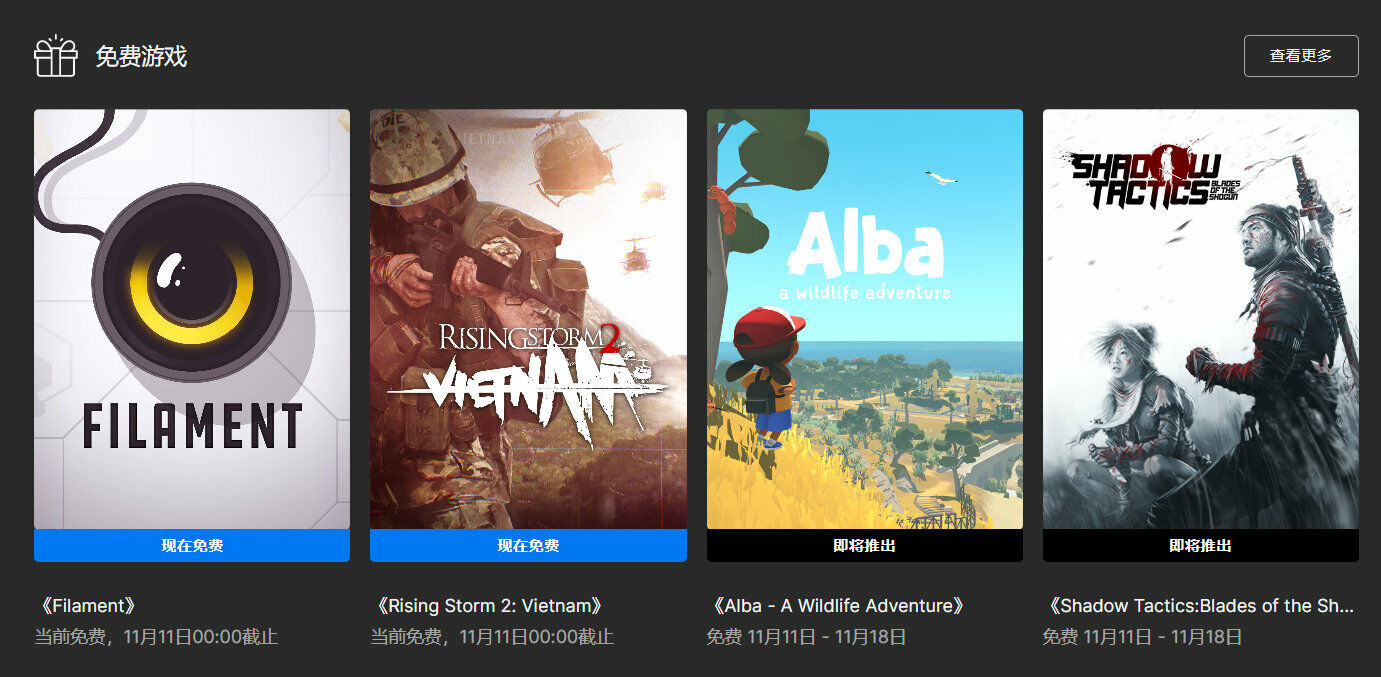 【喜加一】Epic喜加二,《风起云涌2:越南》和《Filament》免费领