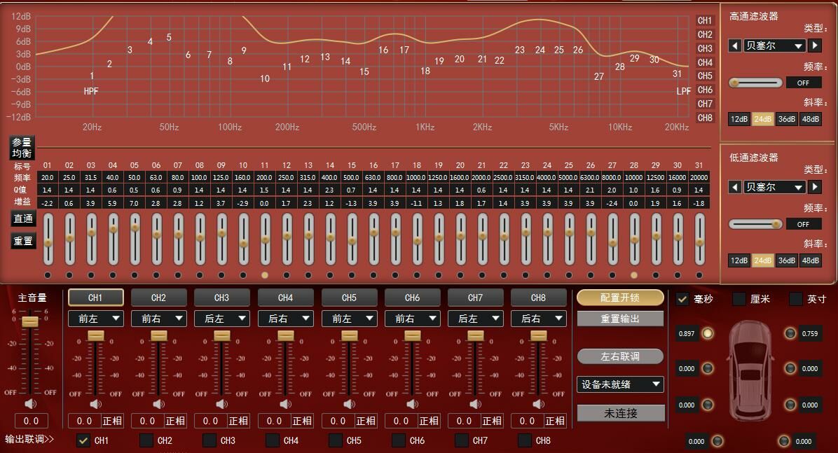 5.1和7.1家庭影院或汽车音效参考设置: