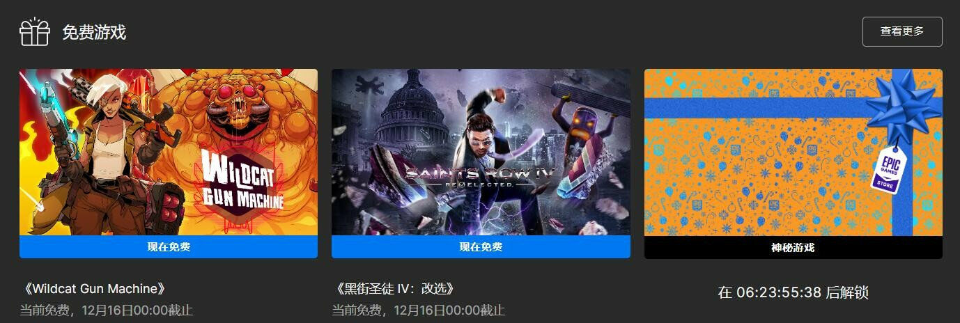 Epic喜加一今日继续!本周送出的游戏是《暴走枪姬》以及《黑街圣徒4:改选》,而作为Epic圣诞喜加一活动的神秘礼物将于明日正式公开,并于12月16日开放领取。