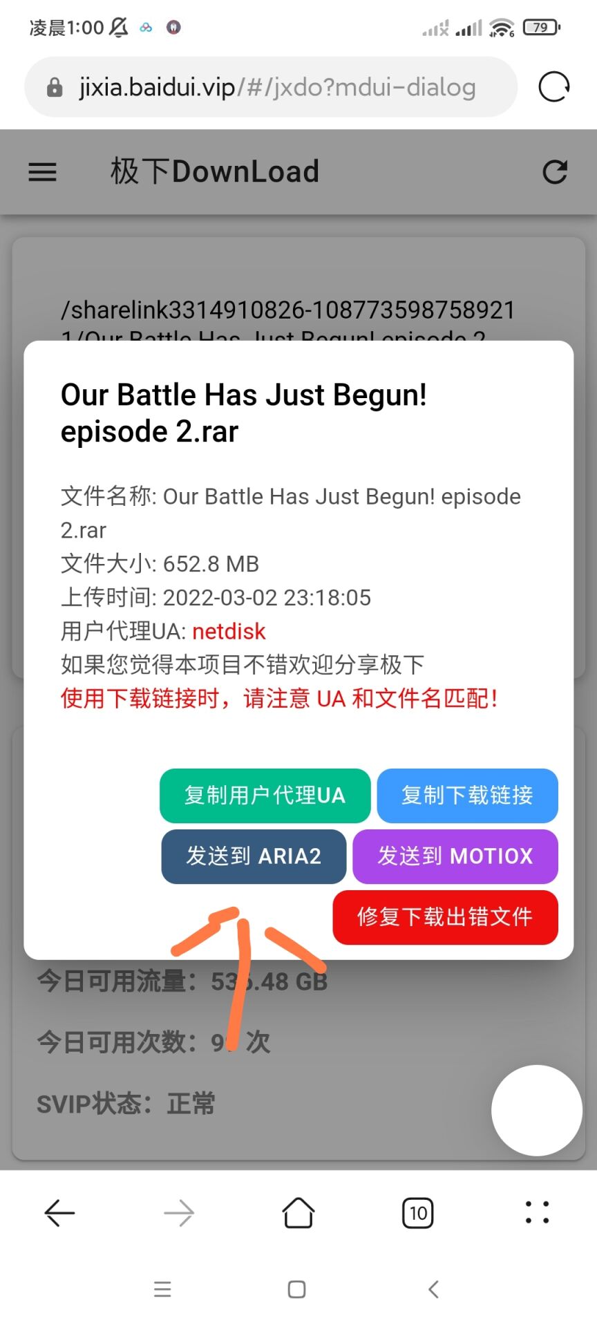 【技术教程】手机度盘链接不限速方法 技术教程, 野生技术协会 2年前 walaot - 16 很荣幸加入进来,随便分享一下我下载百度网盘链接的方法,和站里大佬不一样的是我推荐的是 网站解析➕软件下载的方式 最后审核由 龙姐 UID:1 极下: https://jixia.baidui.vip/#/jxdo aira:https://github.com/Xmader/aria-ng-gui-android :https://pan.baidu.com/s/1deAQa5DZW4gPQV040NkbNQ 93jx 1,进入极下网站,把别人分享的百度网盘复制到界面上点击解析 ps:使用前要先到极下微信公众号回复获取验证码。 2,打开aira2,当显示这个画面说明已经链接上了。 3,选择解析出来的文件点击后选择发送到arir2。 就是这样了,有什么问题回复我,我尽量解答。