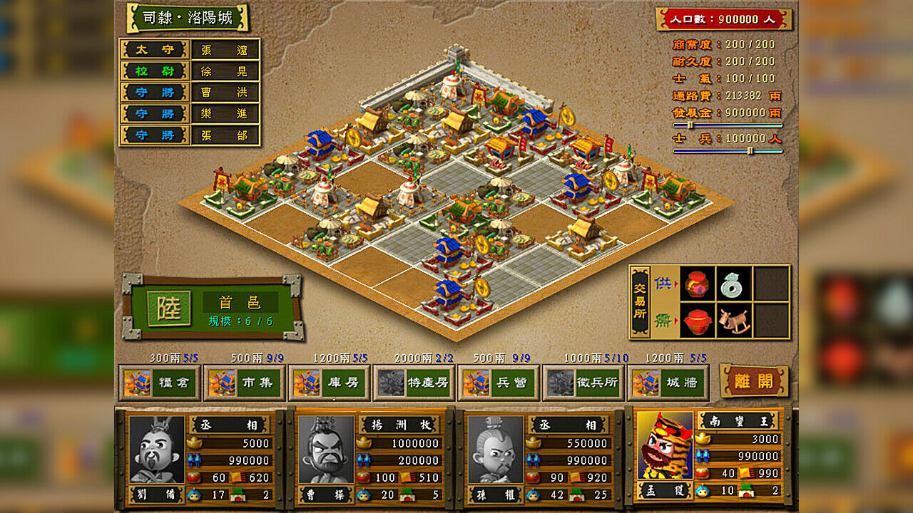 ■城池建設糧倉提升人口,市集、庫房增加商業活動和稅收,徵兵所提升兵源、特產坊產出特產品、提高防禦度的城牆、增加駐軍數的兵營,全依玩家的經營方針!