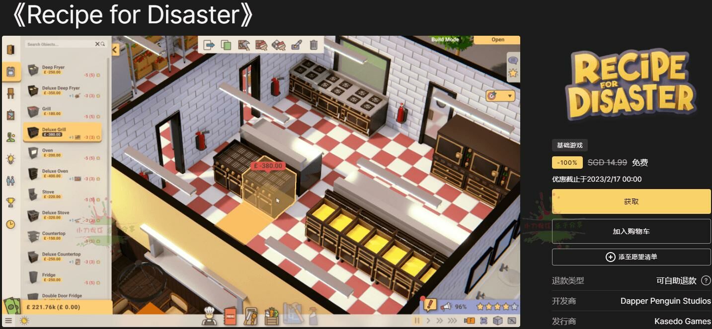 领取地址:https://store.epicgames.com/zh-CN/p/recipe-for-disaster-83726f