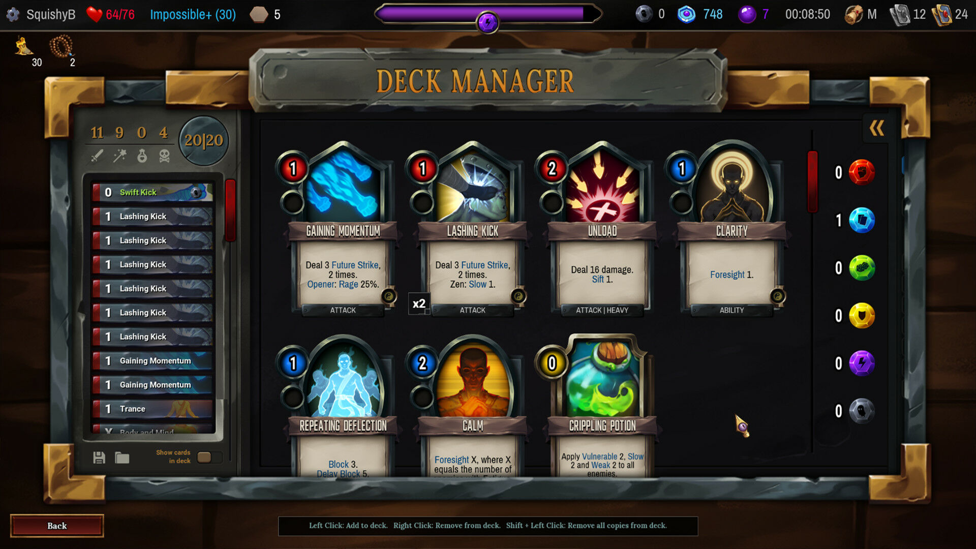 - 4位角色 – 每位角色都有2个独特的初始牌组和法术