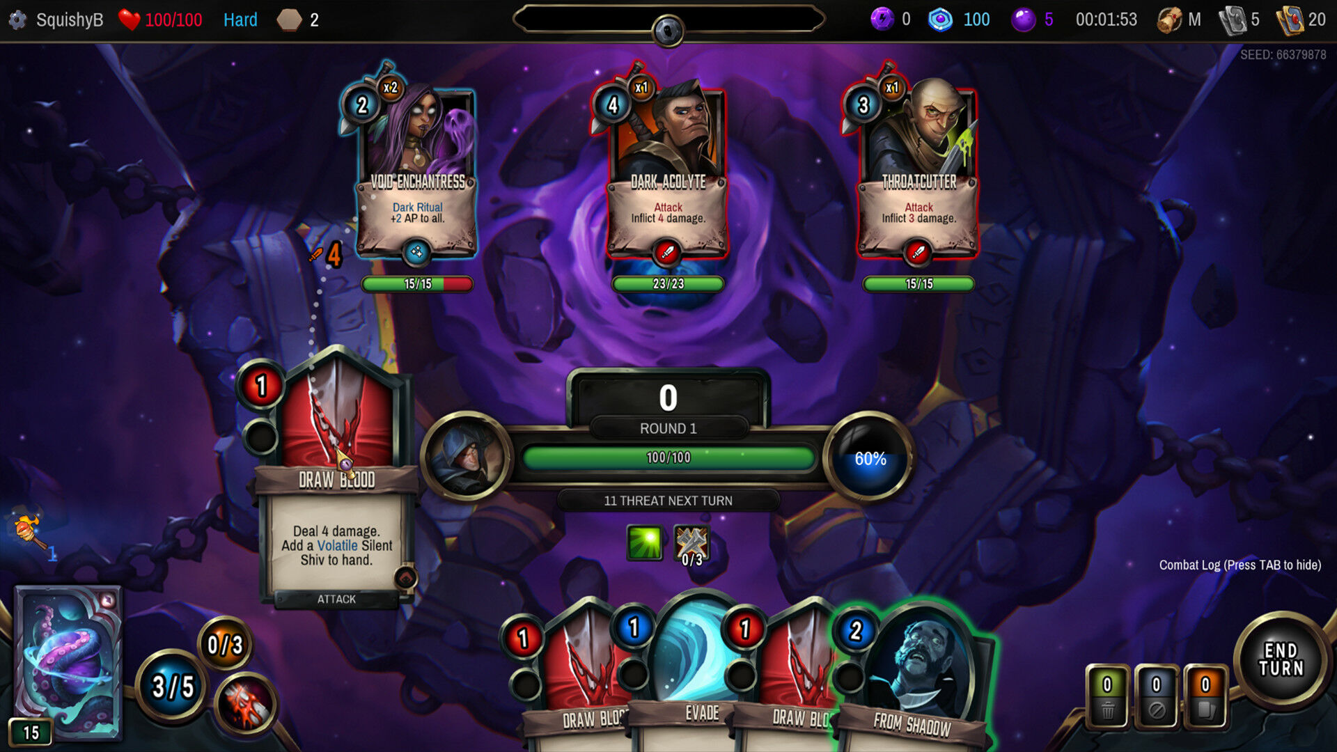 敌人攻击时你会受到威胁。在你的下一回合结束时,威胁触发并造成等额伤害。打出格挡牌能减少威胁,但你需要权衡攻防。