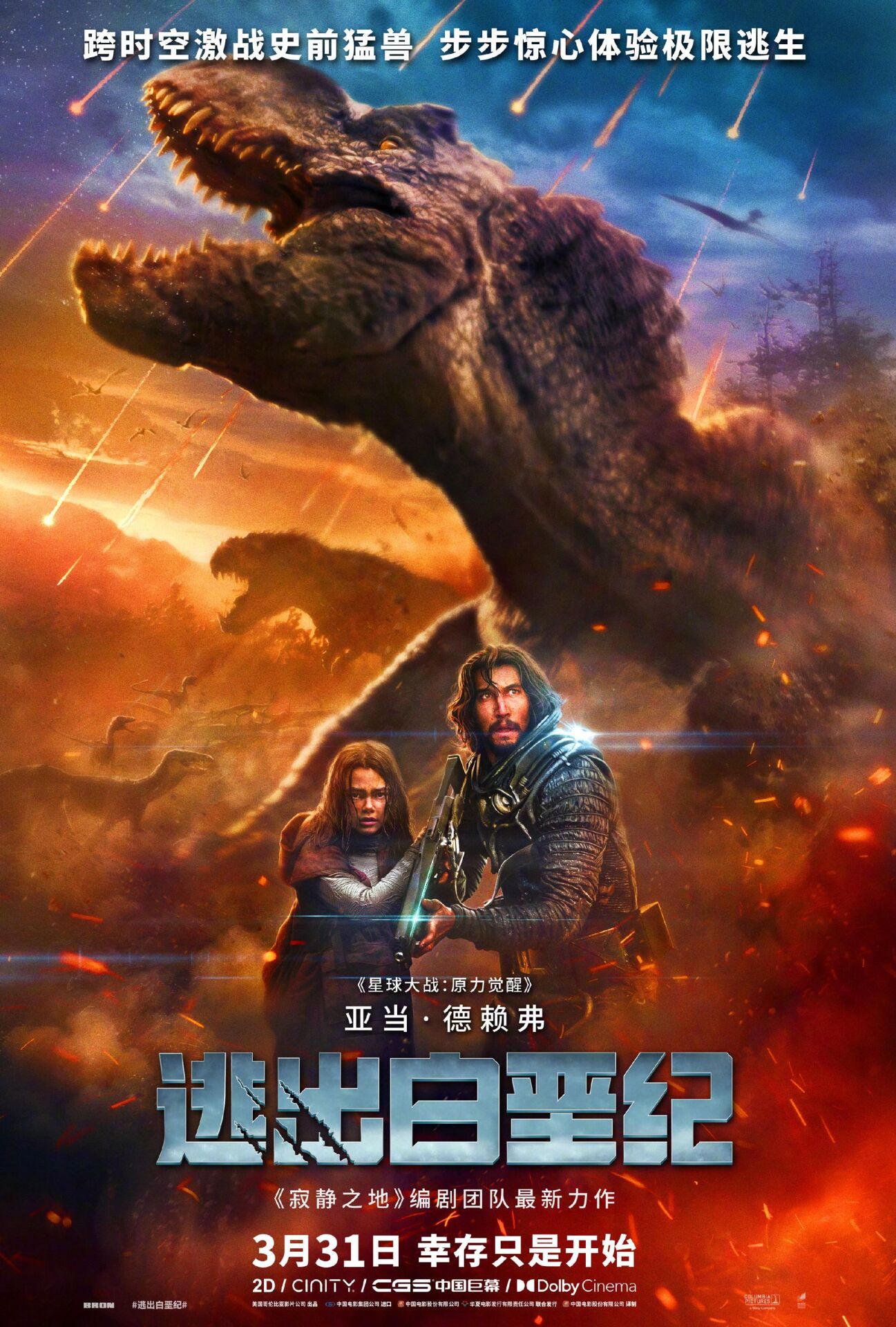 飞船坠毁在未知的星球上,飞行员米尔斯(亚当·德赖弗 Adam Driver 饰)发现自己竟被困在了6500万年前的地球上。此时只有一个获救的机会,他和另一位仅有的幸存者寇娅(阿丽亚娜·格林布拉特 Ariana Greenblatt 饰)要在这片充满危险史前生物的未知环境中极限求生 最后审核由 龙姐 UID:1