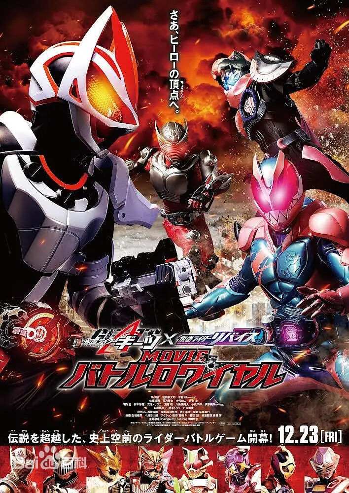《假面骑士Geats×假面骑士Revice The Movie Battle Royal》,是日本特摄《假面骑士Geats》和《假面骑士Revice》以及《假面骑士Ryuki》联动剧场版,口号为“来吧,迈向英雄的顶点”。 最后审核由 龙姐 UID:1