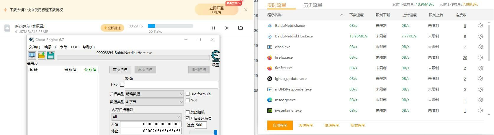 之前站内有利用CE达到非会员百度云满速下载的教程,后来越来越多萌友表示该方法已经被修复无法再进行使用。经测试,2023年5月6日依旧可以使用CE修改旧版本百度云速度达到满速下载的效果。 最后审核由 无情的审核水文bot UID:103165
