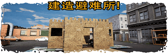 每天艰难的求生生活会把人折磨得精疲力尽,为什么不稍微停一下,去到一个舒适的地方好好咪上一觉呢?侵占、建造和随心定制属于你的纸板基地。另外,记得做些防御措施哦,因为对手流氓团伙的对你的骚扰迟早会来的!